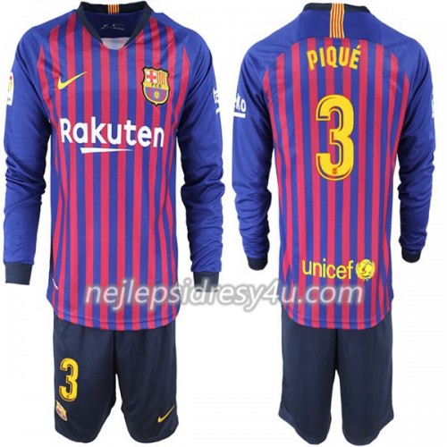 Fotbalový Dres FC Barcelona Pique 3 Dětské Domácí 2018/19 Dlouhý Rukáv